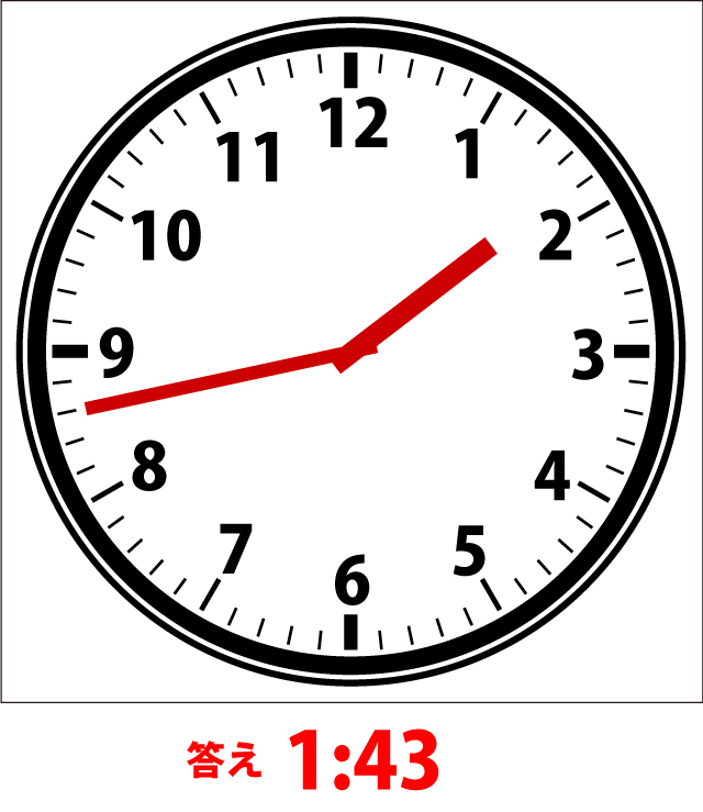時計のイラストを使用した脳トレ問題です。時計は何時を差していますか?時間を答えなさい。暇つぶしではなく、認知症予防の為にも毎日のドリルのようにご利用下さい。