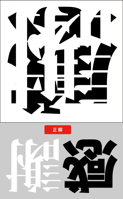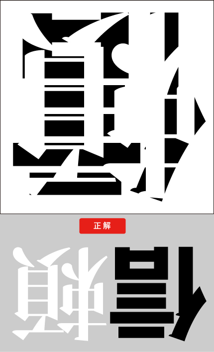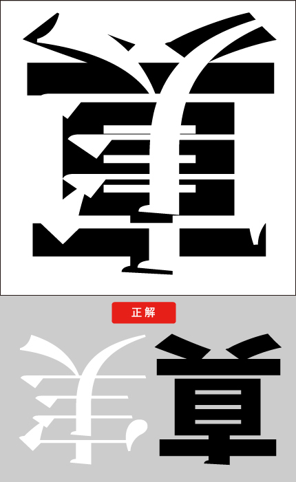 天地逆さまになった2つの漢字が重なっています。2つの漢字を答えなさい。