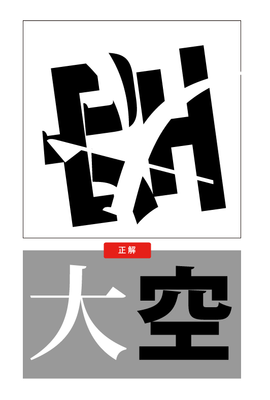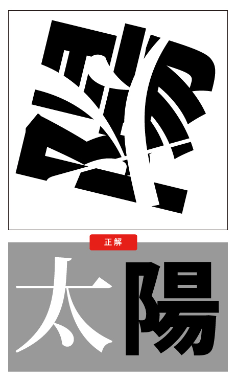 1秒毎に回転する無料脳トレ問題、上級コース。2つの漢字が重なっています。その2つの漢字を答えなさい。