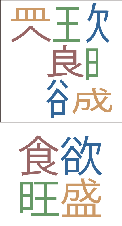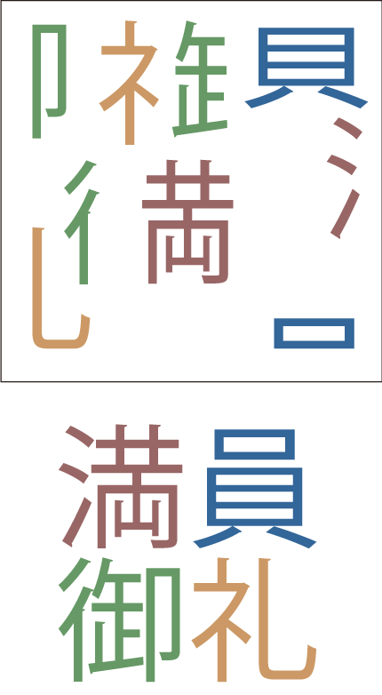 漢字4文字4文字の漢字がバラバラに別けられています。各部分を移動して漢字4文字を完成させて下さい。 |