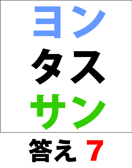 カタカナ足し算、脳トレ計算問題です。(ヨン・タス・ニイ)は、いくつでしょうか?動く問題は、動体視力のトレーニングにもなります。