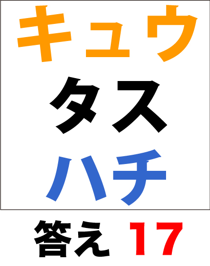 脳トレ計算です。(キュウタスイチ)はいくつでしょう?暗算で足してみましょう。問題は5秒毎に回転します。