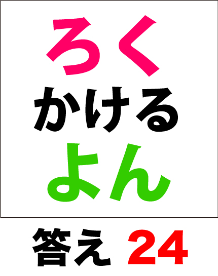 脳トレ計算です。(ろくかけるよん)はいくつでしょう?暗算で足してみましょう。問題は5秒毎に回転します。