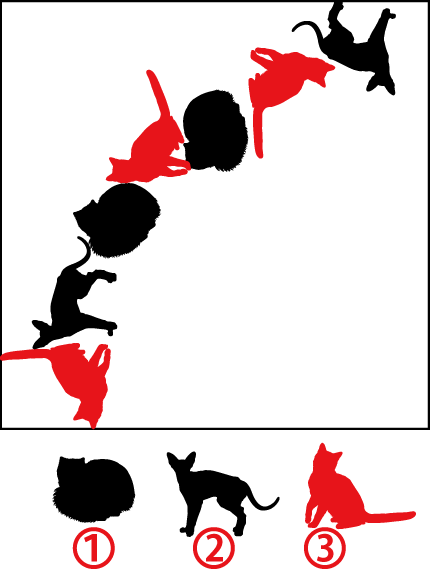 猫のイラストを使った脳トレ問題集、上級コースです。1秒毎に問題のイラストが回転します。3種類の猫のなかで1種類だけ数が多い番号を答えなさい。