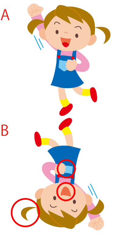 間違い探し間違い探しの問題は、Bのイラストが回転します。AとBのイラストの違いを見つけてください。 |