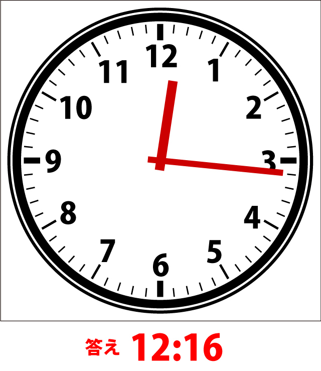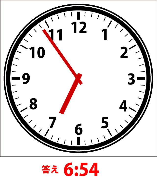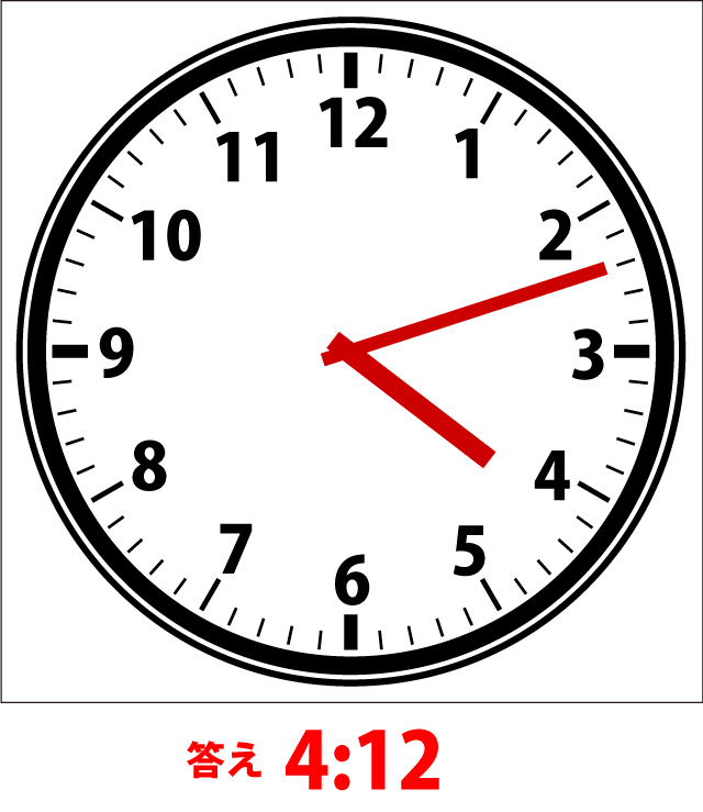 下の時計のイラストを見て、脳トレーニングです。時計のイラストは何時を差していますか?時間を答えて下さい。