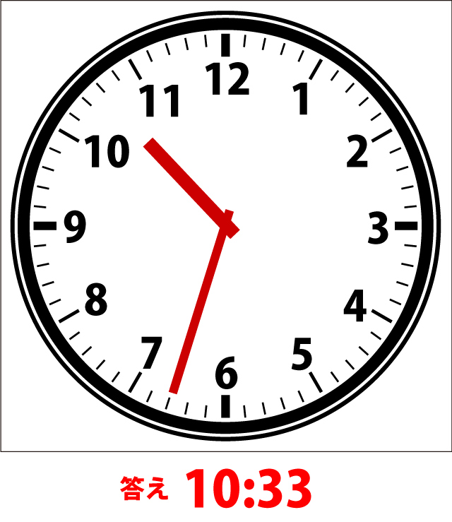 このページ最後の問題です。時計のイラストは何時を差していますか?時間を答えて下さい。